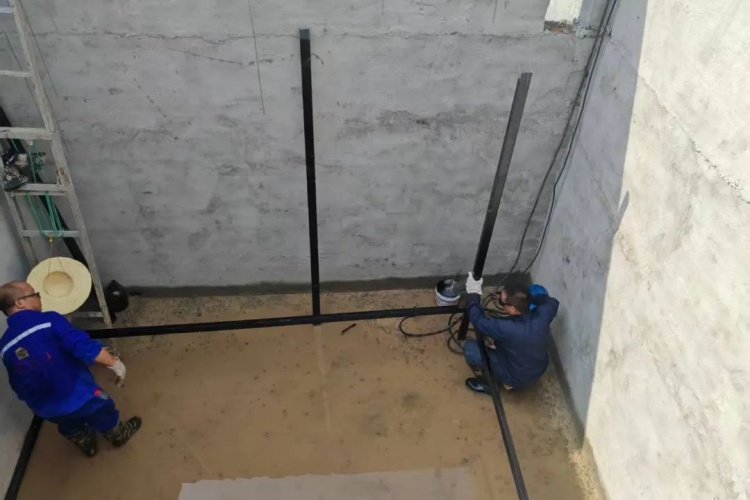 屠宰場污水處理池池深四米五,池內(nèi)像個巨型“蒸籠”——陽光直直曬進池底,熱氣在池壁間循環(huán),比地面更顯悶熱。而焊工師傅們的工作,正要在這樣的環(huán)境內(nèi)開展——他們需要進池,將一根根鋼架精準焊接,為后續(xù)設(shè)備安裝創(chuàng)造條件。